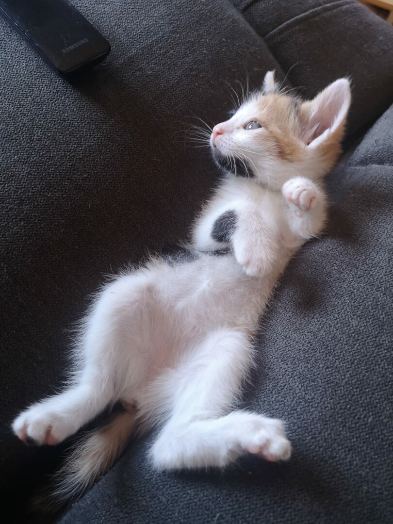 Noa es una gatita que aparecio en la basura por que alguien la dejaria alli con tan solo 2 mesecitos..